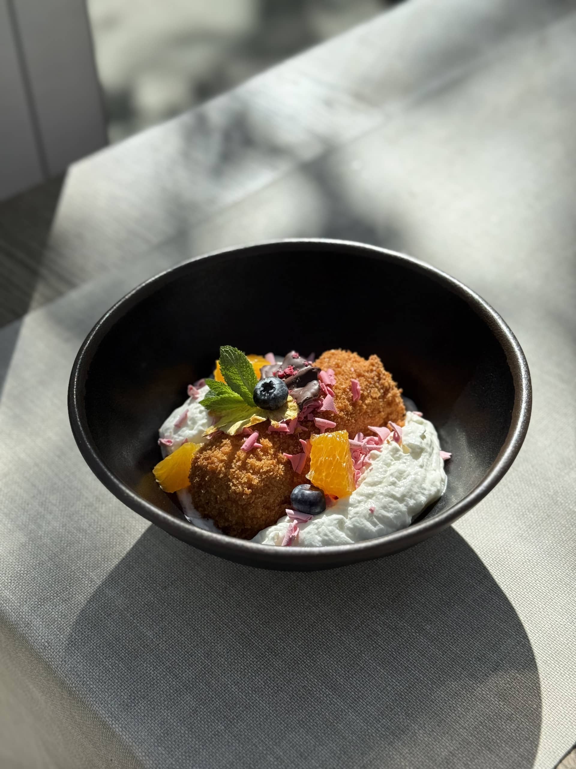 Rántott tejbegríz | barack | bodza | tejfölhab | bazsalikom 2950 Ft