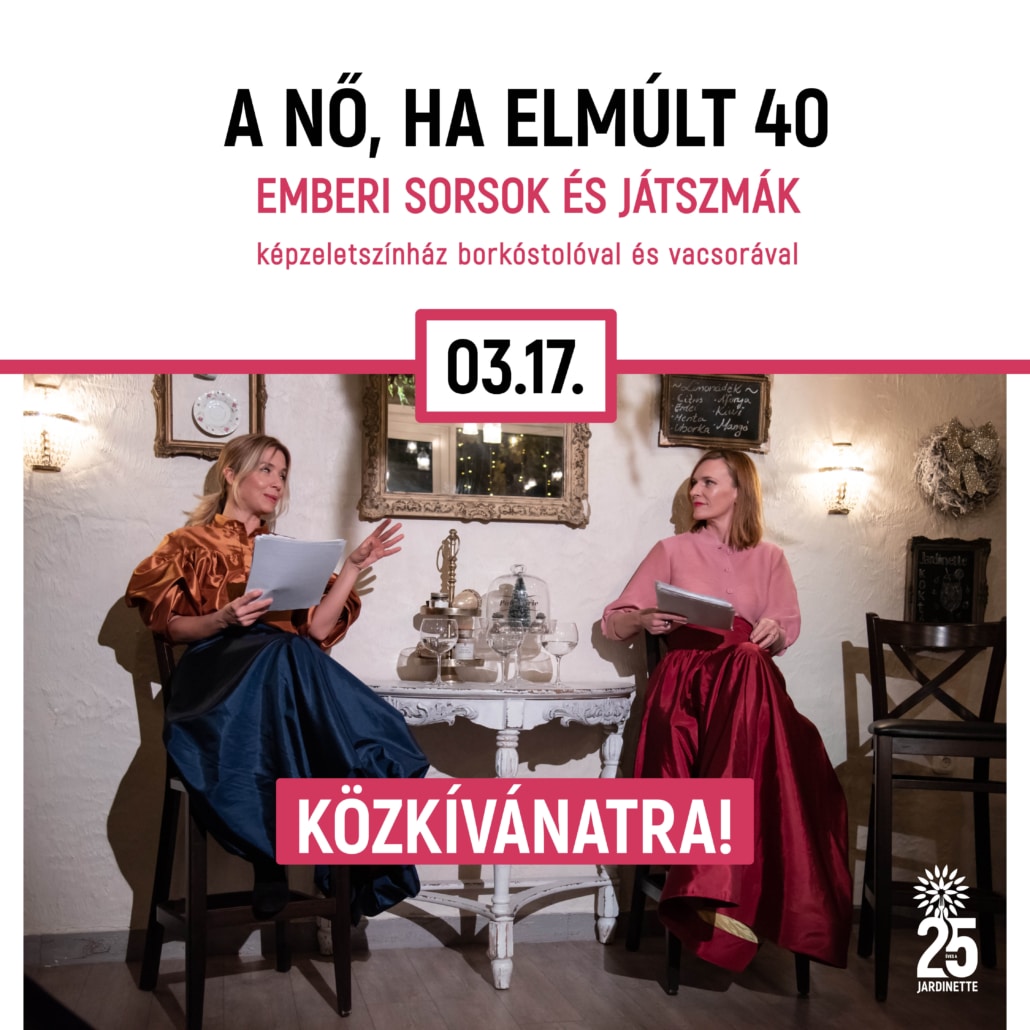 A képzeletszínházi est keretében két nagyszerű, közismert színésznő beszélget a moderátorral, valamint a nézőkkel. A Janikovszky Éva írásai alapján életre keltett halhatatlan nőalakok segítségével gondolkodnak közösen a 40-45 év feletti lét végpontjairól: mindennapi mélységeiről és magasságairól. Őszinte kíváncsisággal és együttérzéssel vallanak arról, milyen válaszok, megoldások születtek bennük az élet különféle helyzeteire a negyedik X-en túl…